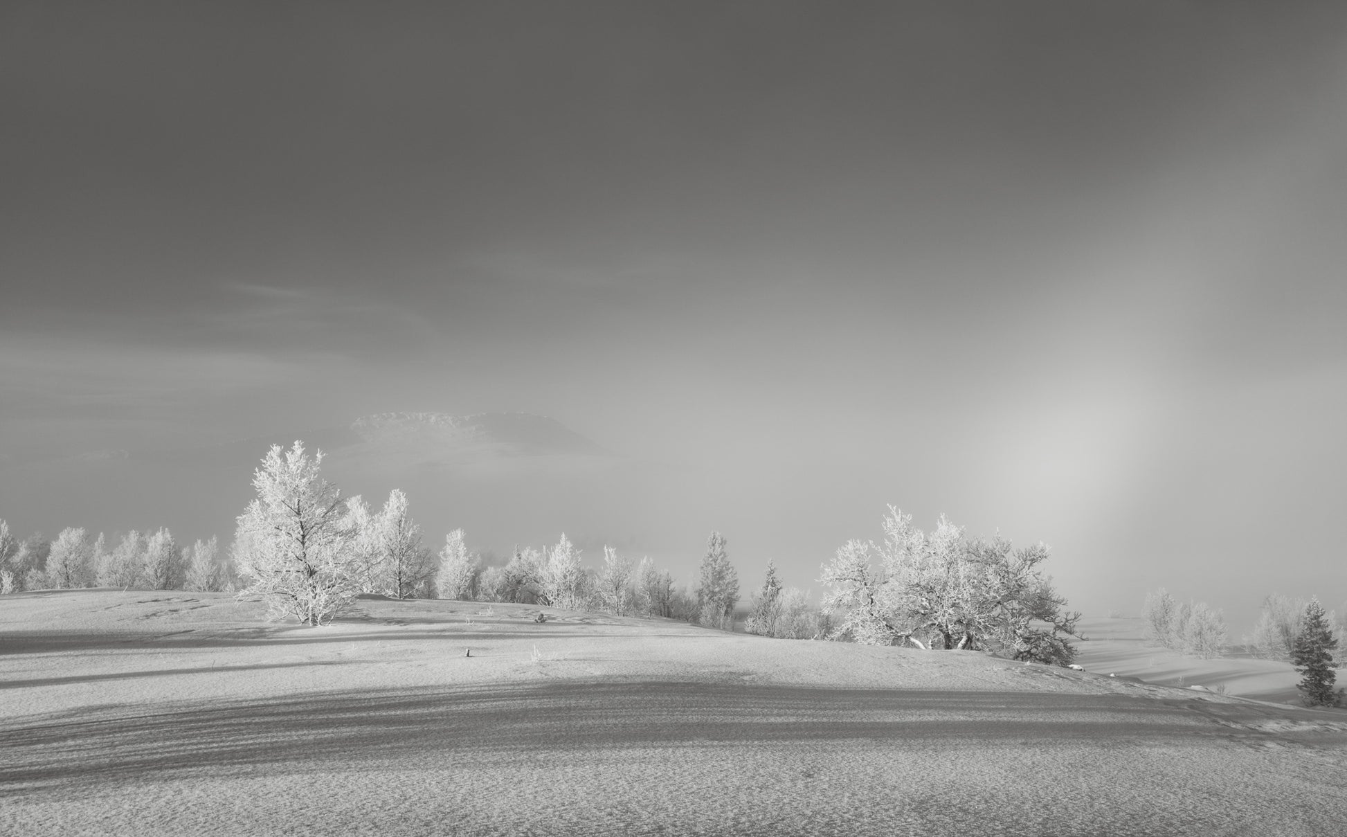 Fotografiene leveres på 308 grams Hahnemuhle Photo Rag syrefritt bomullspapair med ramme 1072 matt, sort og rettvinklet, 2 mm ANW2035 White/Offwhite passpartout, refleksfritt Clarity AR Glass.
